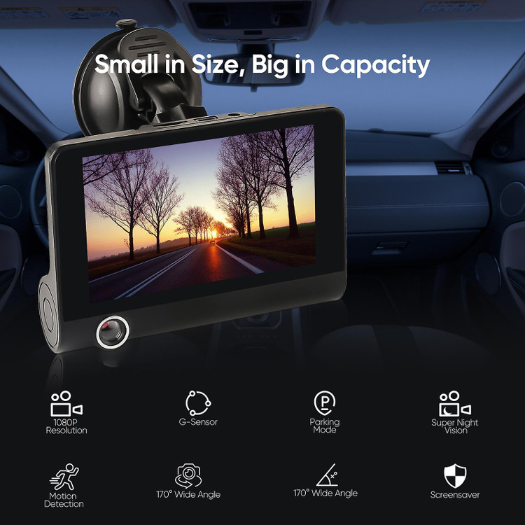 معرفی دوربین ثبت وقایع 3 لنز Video Car DVR برای جلو، دنده عقب و کابین خودرو